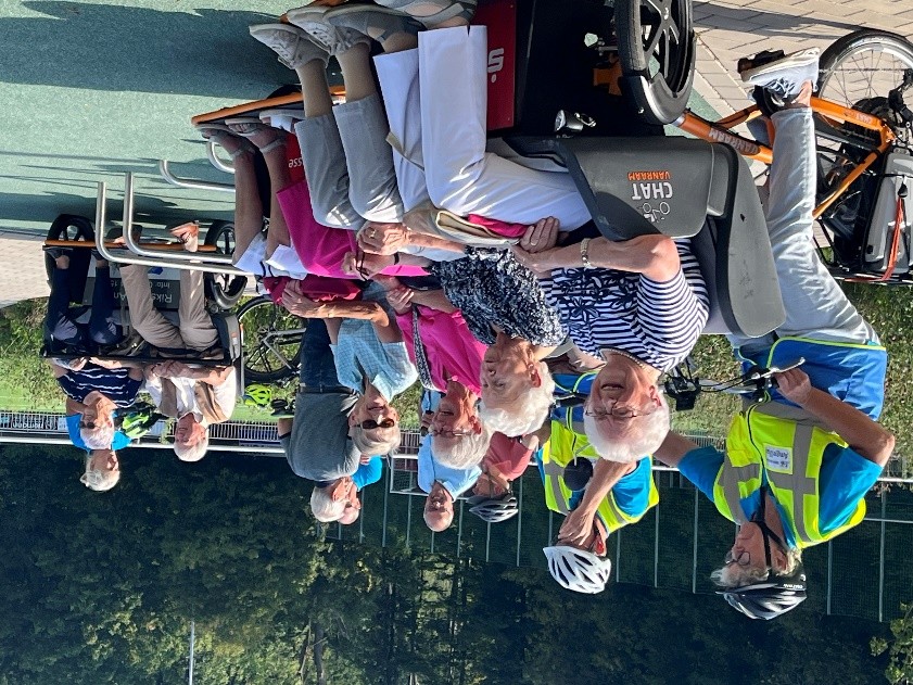 Bald hörte man draußen das Klingeln der 4 Rikscha-Fahrer der Spvg. Niedermark und des Heimatvereins Lengerich. Sie radelten einige der Gäste mit den Rikschas zum Sportzentrum, was als interessante und lustige Fahrt alle begeisterte.