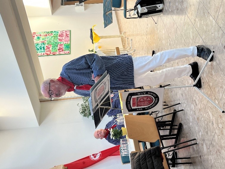 Nach Rückkehr zum Foyer wurden alle vom Shanty-Chor, der bereits mit 20 Personen eingetroffen war, begrüßt. Der Chor sang Seemannslieder, wobei die Gäste schnell mitsangen und miteinander schunkelten. Ludger Hellermann, ein ehemaliger Hagener, erzählte in plattdeutsch einige Anekdoten.