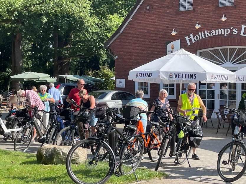 Die 2. diesjährige E-Bike-Tour für Rentner, die Spaß am gemeinsamen Radeln haben, fand bereits am 9. Aug. 2025 statt. Oskar hatte eine ca. 50 km lange Rundtour ausgearbeitet, die zum Bauernhof-Cafe „Holtkamps Deele“ führte.