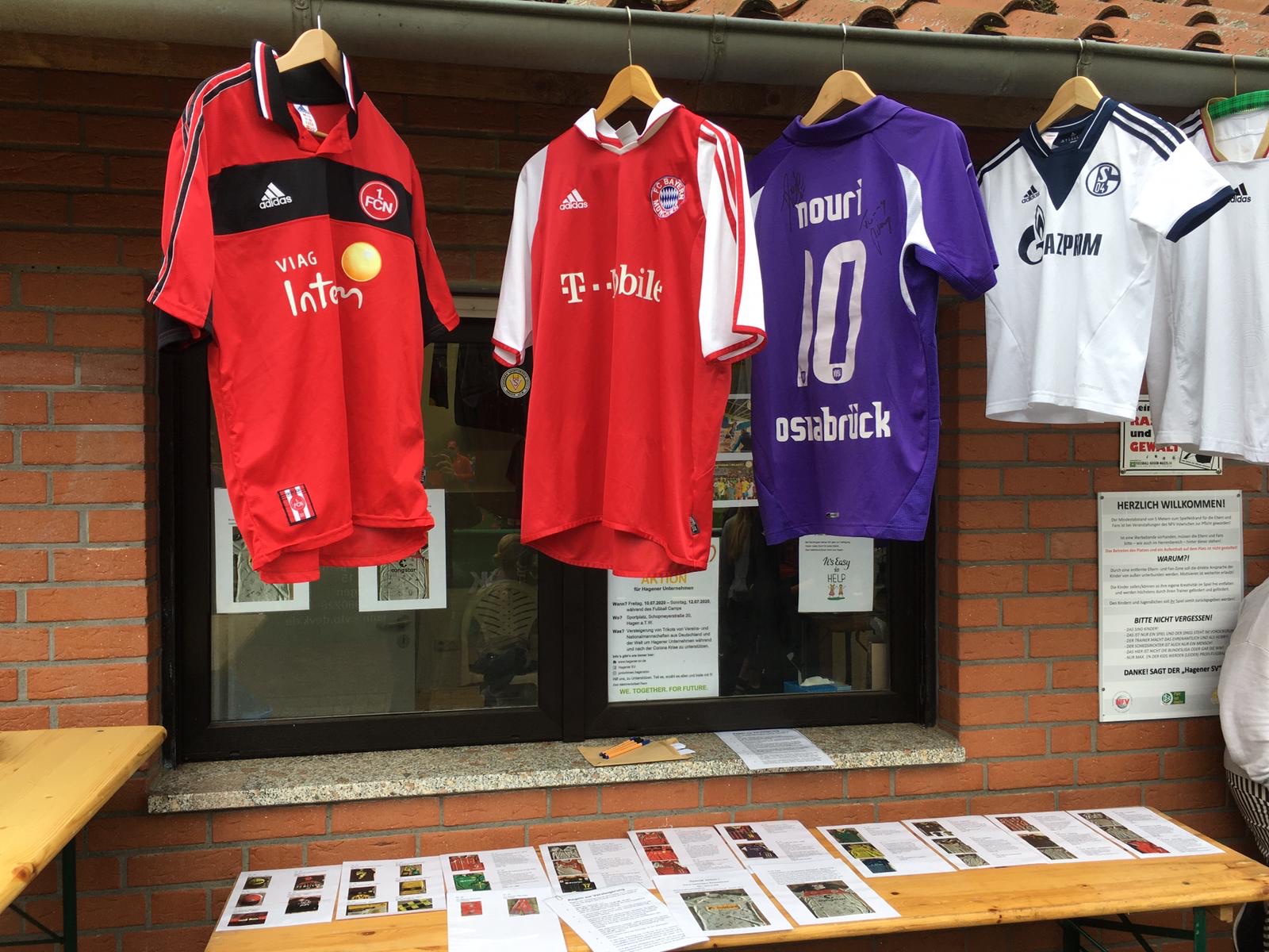 Also wurde eine Trikotaktion ins Leben gerufen. Dafür wurden fleißig ausgediente Trikots von Vereinsmitgliedern gesammelt und die Werbetrommel gerührt. Sogar Bundesligavereine wie der FC Bayern München, Borussia Dortmund, Borussia Mönchengladbach und der FC St. Pauli konnten von der Aktion überzeugt werden. Und so kamen einige richtig tolle Sachen, u.a. original signierte Trikots, zusammen.