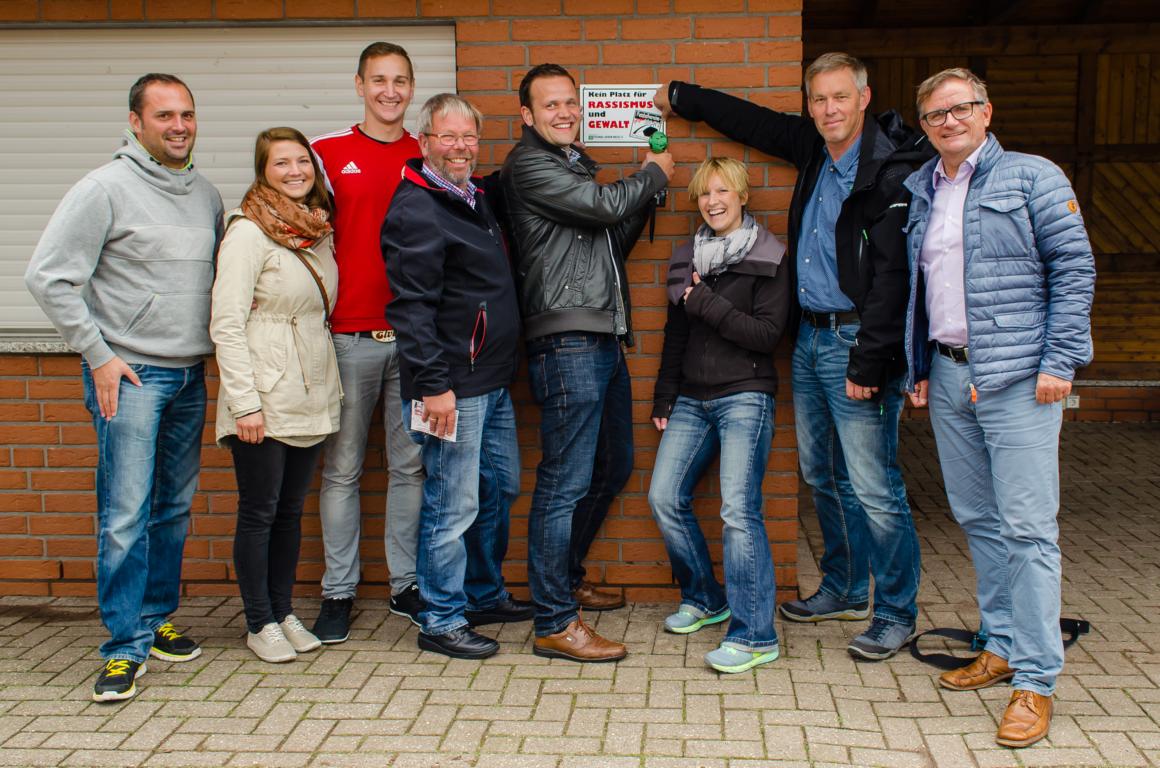 Die 1.-Herren-Fußballer des VfL Kloster Oesede machten auf dem Weg zu ihrem Auswärtsspiel in Haste Station in Hagen und überreichten den Organisatoren einen Scheck über 250 Euro. Eine ganz tolle Geste der VfL-Kicker! Auch Vertreter des Niedersächischen Fußballverbandes schauten vorbei und übergaben neben einer Spende auch ein Schild mit der Aufschrift "Kein Platz für Rassismus und Gewalt", das der HSV am Verkaufsstand am Rasenplatz anbringen möchte. Bernd Kettmann, Vorsitzender des NFV-Kreises OS-Land, und NFV-Präsidiums-Mitglied Frank Schmidt dankten den Organisatoren und dem Hagener SV für diese gelungene Aktion und zitierten den ehemaligen DFB-Präsidenten Egidius Braun: "Fußball ist mehr als ein 1:0!". Klaus Herkenhoff, 2. Vorsitzender des HSV, wies auf gelebte Integration innerhalb des Sportvereins hin. Als Beispiel nannte er den Iraker Fathi Salar, der seit dieser Saison in der 2. Mannschaft spielt und in der Partie gegen die Dritte seinen ersten Treffer erzielte.