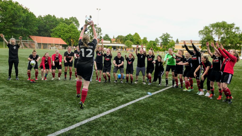 Anschließend kannte der Jubel beim Hagener SV keine Grenzen mehr und die Fußballerinnen schalteten schnell in den Partymodus um. Besonders groß war der Jubel als Spielführerin Jasmin Krützmann den Pokal aus den Händen von Staffelleiter Norbert Fuest entgegennahm.