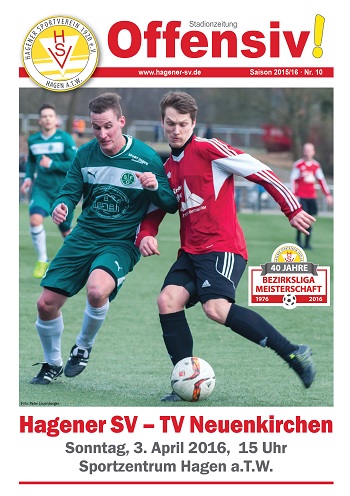 Am Sonntag, dem 3. April, empfangen die 1.-Herren-Fußballer des HSV um 15 Uhr den TV Neuenkirchen im Hagener Sportzentrum. Gegen das Schlusslicht, bei dem Ex-Nationalspieler Tobias Rau in dieser Saison erst zu zwei Einsätzen kam, soll die Erfolgsserie in der Kreisliga von zuletzt sechs Siegen am Stück weiter ausgebaut werden. Nicht so gut lief es für die Mannschaft dagegen im Achtelfinale des Kreispokals. Beim klassentieferen SV Wissingen schied man unglücklich nach Elfmeterschießen aus. Zu der Partie gegen den TV Neuenkirchen ist eine Ausgabe der Stadionzeitung "Offensiv!" erschienen, die bereits hier als PDF abrufbar ist.