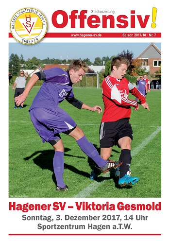 Mit einem furiosen 5:3-Auswärtssieg beim Titelanwärter SF Oesede sind die 1.-Herren-Fußballer des HSV erfolgreich in die Rückrunde der Kreisliga Süd gestartet. Nach dem verpatzten Saisonstart mit drei Niederlagen am Stück kamen die Mannen von Trainer Benni Deuper in der Liga immer besser in Fahrt. Von den letzten zehn Spielen wurden acht gewonnen und nur zwei verloren. Am Sonntag, 3. 12., steht für die Erste das letzte Punktspiel in diesem Jahr auf dem Programm. Dann gastiert um 14 Uhr Viktoria Gesmold am Hagener Jägerberg. Zu dieser Partie ist eine neue Ausgabe der Stadionzeitung „Offensiv!“ erschienen, die hier bereits als PDF zum Download zur Verfügung steht.