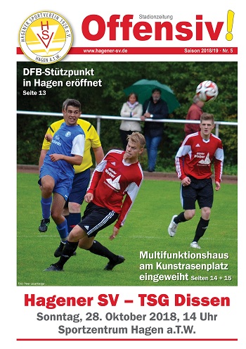 Durch die beiden Siege gegen Glane (3:1) und Neuenkirchen (2:1) haben sich die 1.-Herren-Fußballer des Hagener SV wieder in der Spitzengruppe der Kreisliga Süd festgesetzt. "Und genau in dem Bereich der Tabelle wollen wir auch nach dem Spiel gegen die TSG Dissen bleiben", schreibt HSV-Trainer Benni Deuper in der neuen Ausgabe der Stadionzeitung "Offensiv!". Die Partie gegen den Tabellenelften wird am Sonntag, 28. Oktober, um 14 Uhr auf dem Sportplatz im Hagener Sportzentrum angepfiffen.